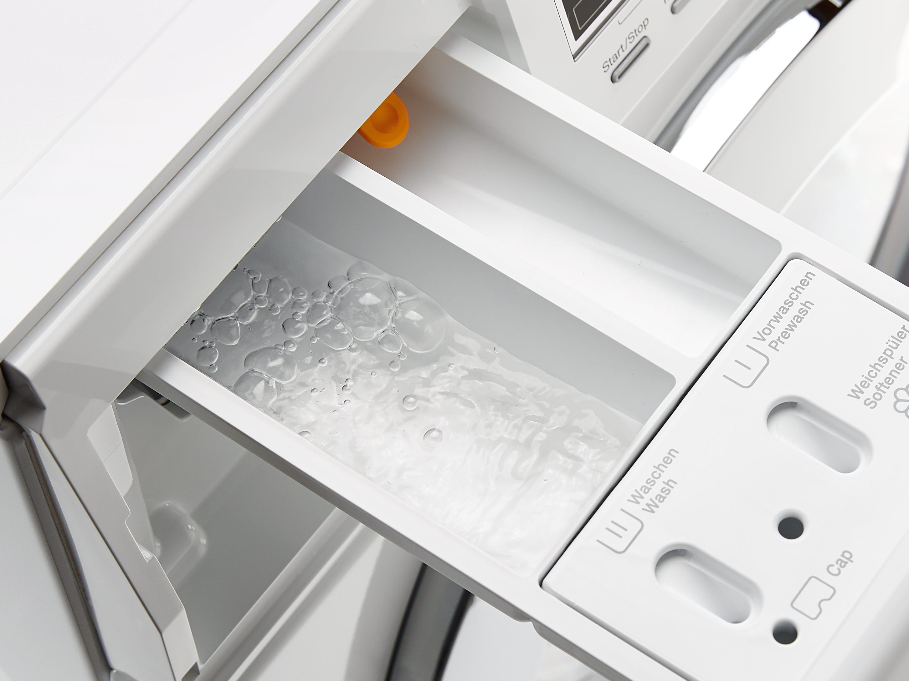 Keine Rückstände im Einspülkasten: Bei jedem Waschprogramm sorgen kräftige Wasserstößen für Sauberkeit.