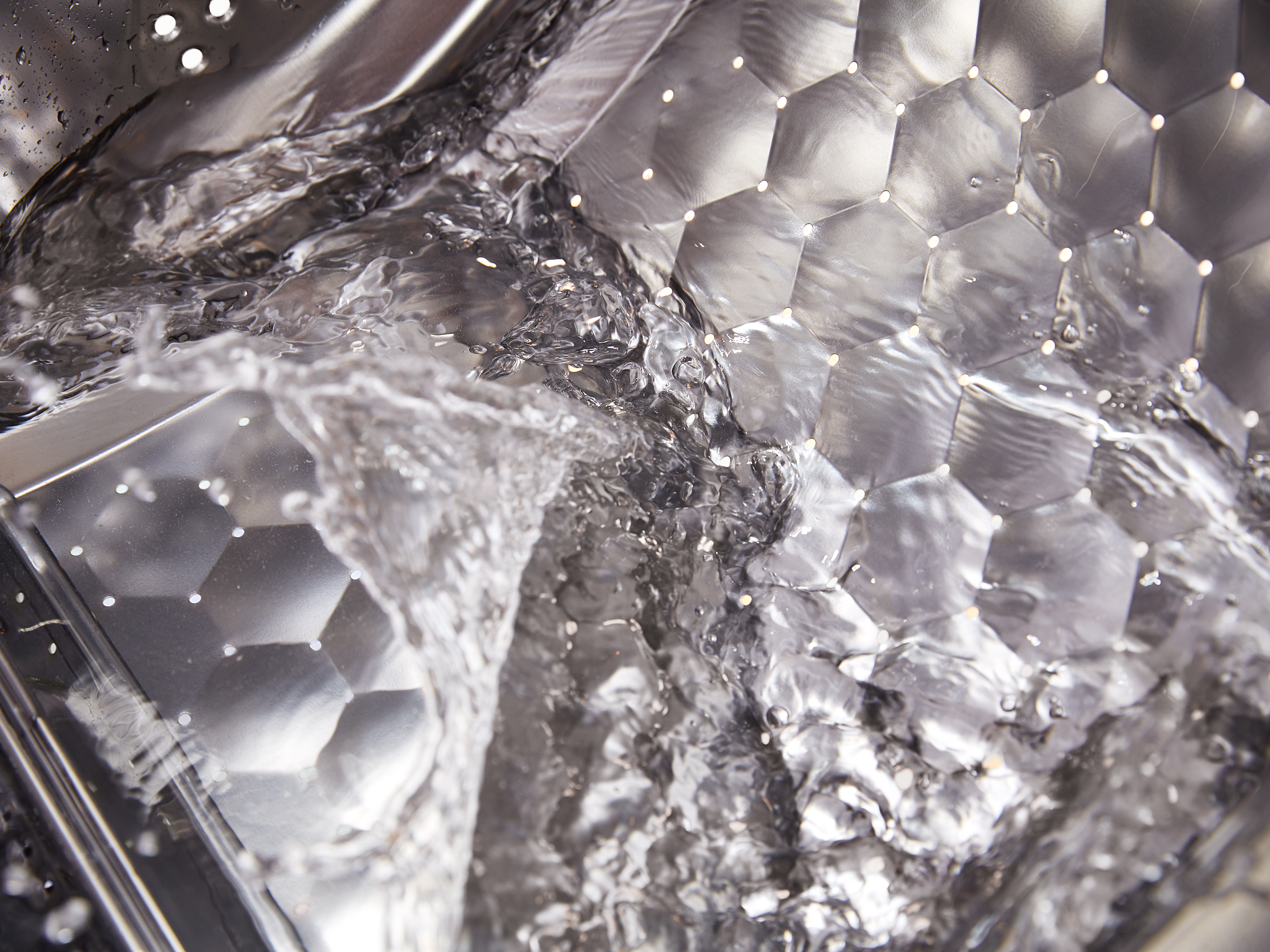 Absolut schonend: Durch die wabenförmige Oberflächenstruktur gleitet die Wäsche sanft auf einem feinen Wasserfilm.